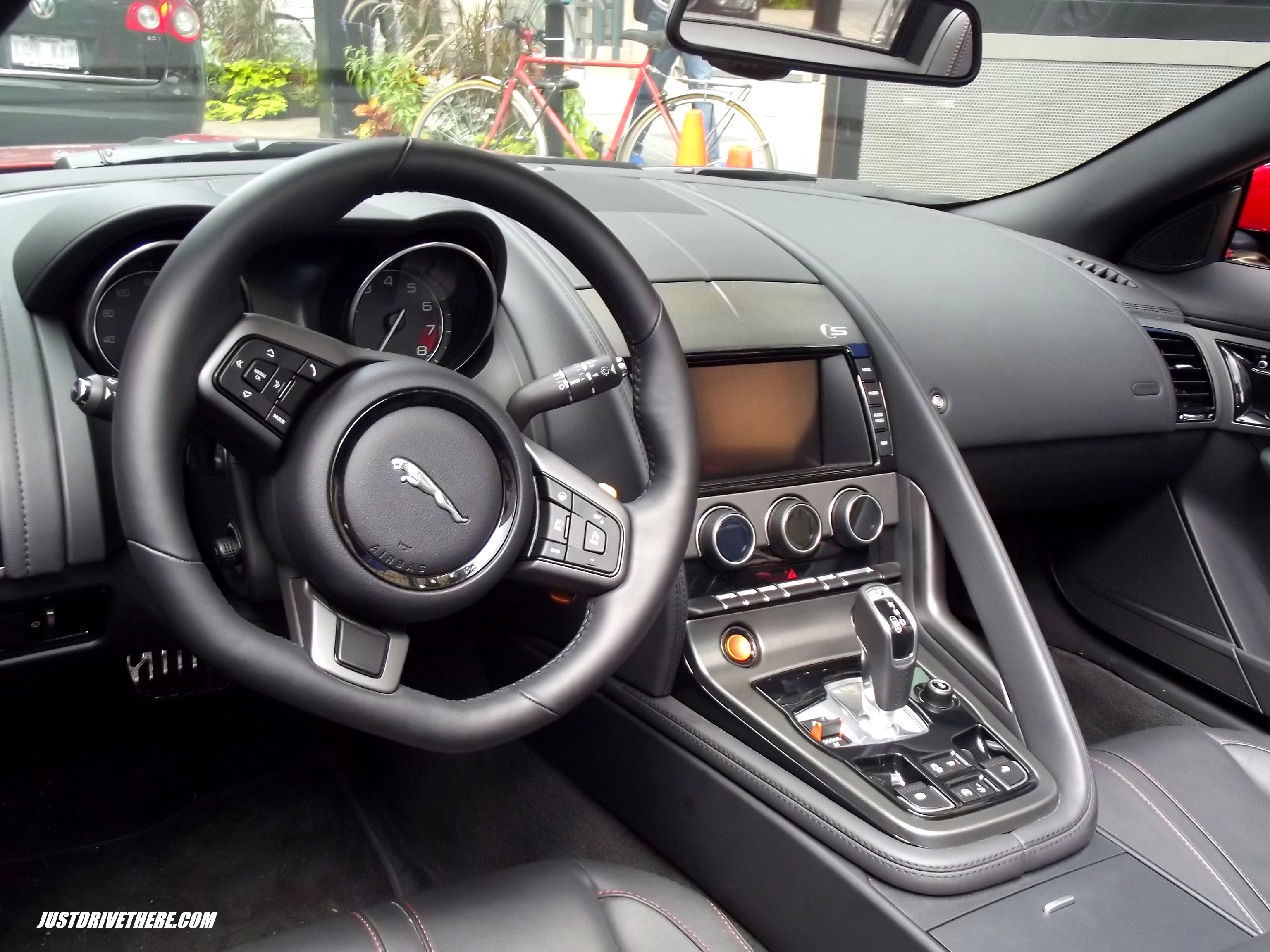 Start driving the F-Type, and things only get better. To be honest, I did not get to really push the car, as this was a short city drive in the congested streets of Montreal, so I can’t really say much about the handling or performance. What I can say though, is that in the city, it is a surprisingly easy car to drive. That 8 speed ZF automatic gearbox works a charm, shifting in a very short timeframe, without the slightest jerk. The steering is very precise, while not being too heavy. You can really point the F-Type exactly to where you want it to go. It should be a treat on country roads. The ride also was amazing. Considering how bad the streets of Montreal are, at no point did I find myself being tossed around as you would in any other hardcore sports car. All the while, you are followed by that stupendous soundtrack, the second you touch the throttle. Needless to say, the Performance Pack, with the active exhaust is a must have option!